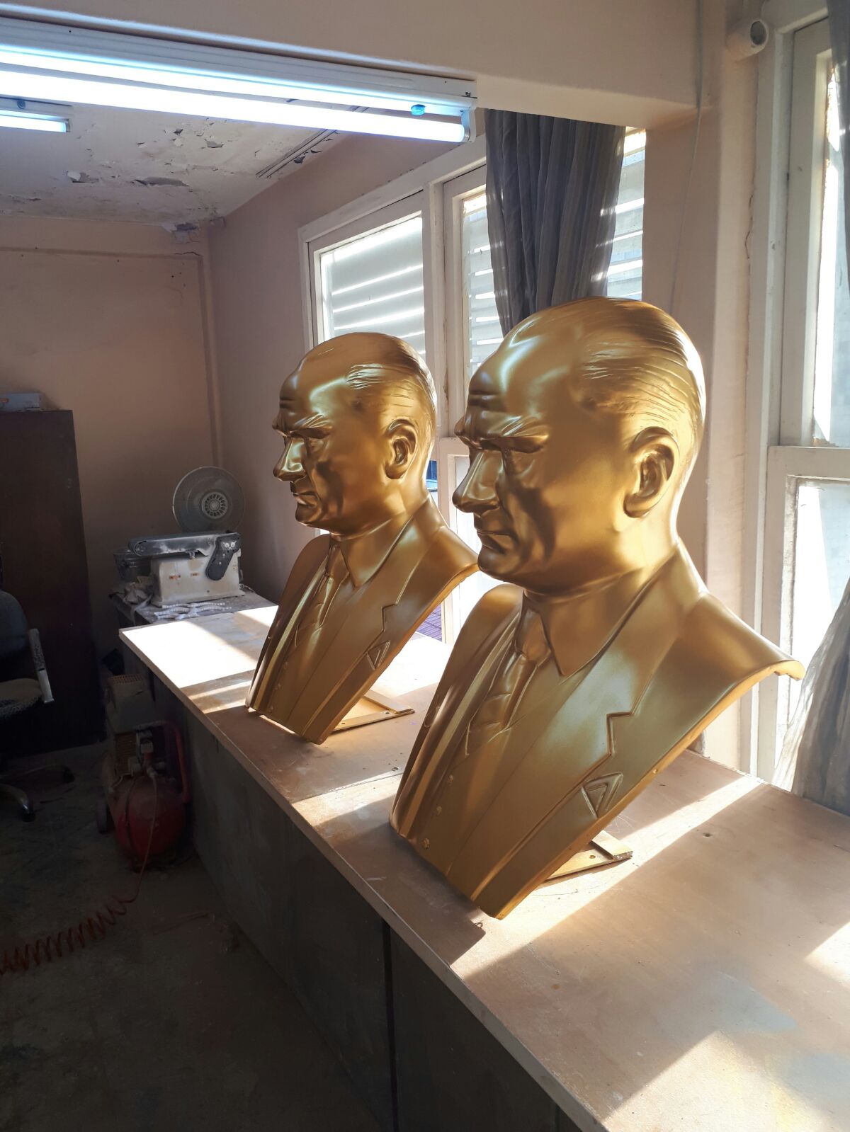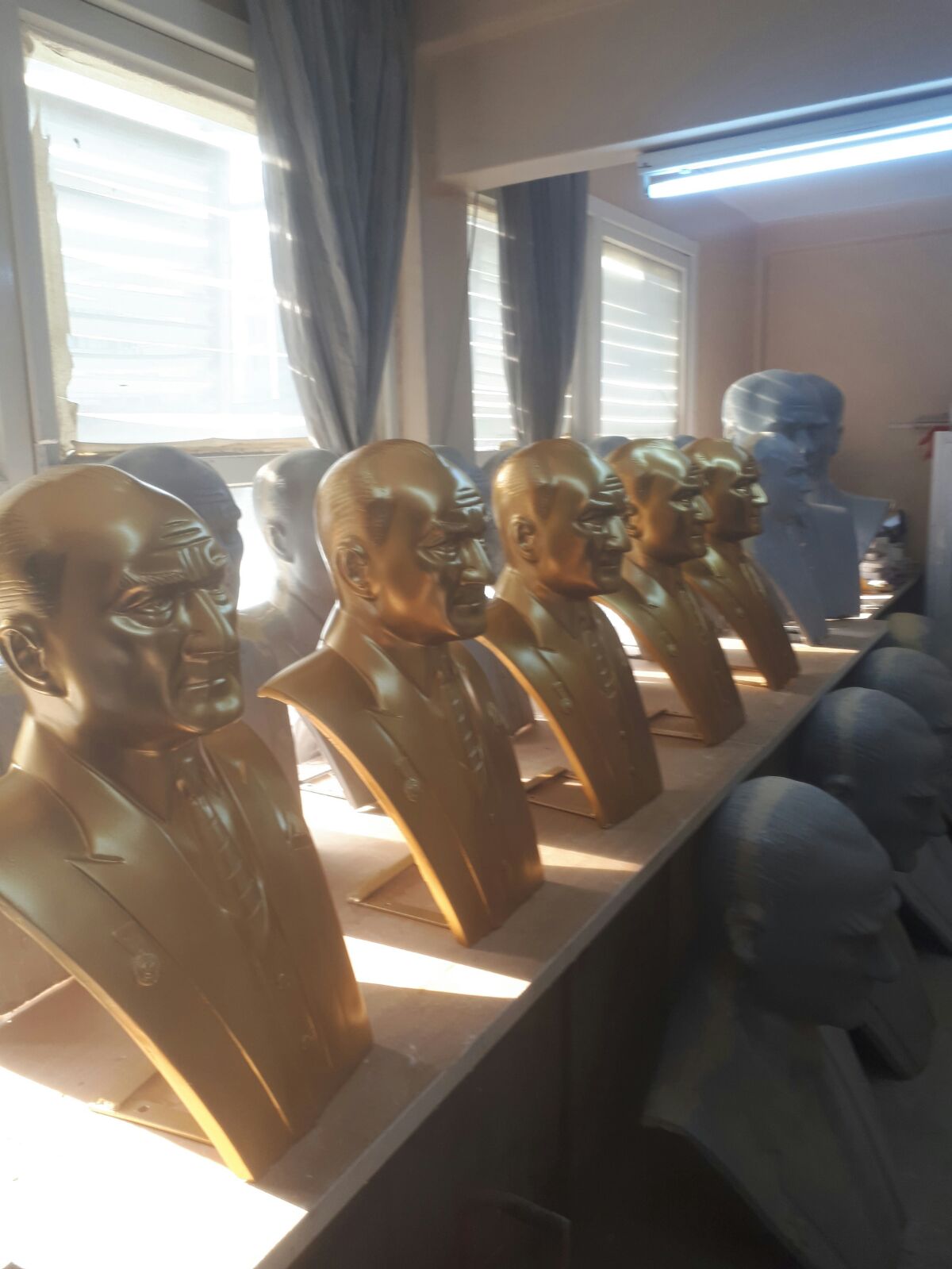 Ürün Bilgisi :Atatürk Büstü;Sivil kıyafetli karşıya bakar şekildedir. Büstün alt kaidesi özel siparişe göre yapılmaktadır. Kaidenin ön tarafında Atatürk'ün kullandığı vecizesinin yazıları pirinç kabartma ile montajı yapılır,Reçine polyester karışımı cam elyaf takviyeli Fiberglas polyesterden imalatı yapılmıştır.